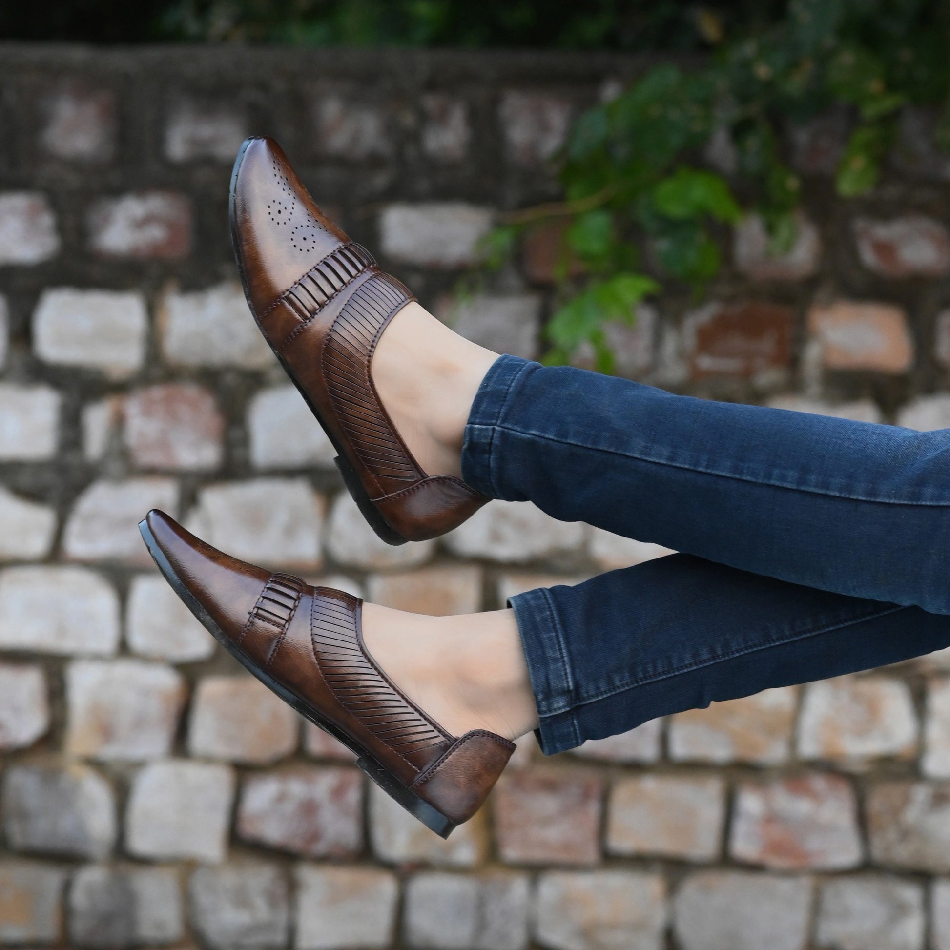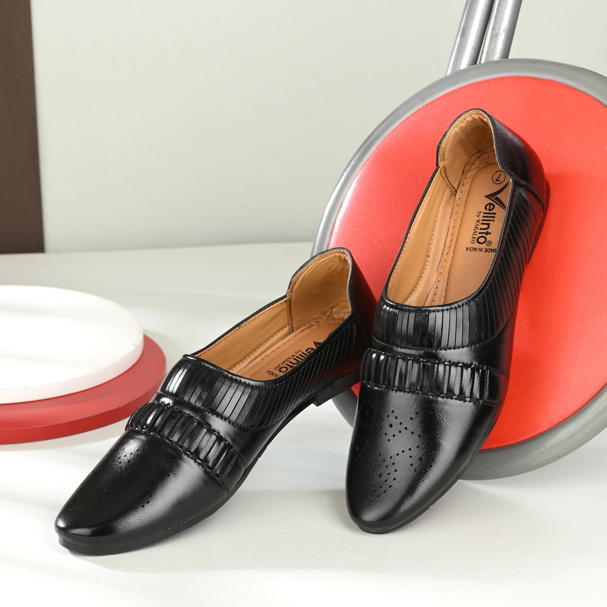 Elevate your style with this classy pair of Vellinto Jutti/mojaris from the house of Wakaleo. Featuring a contemporary refined design with exceptional comfort, this pair is perfect to give your quintessential dressing an upgrade.