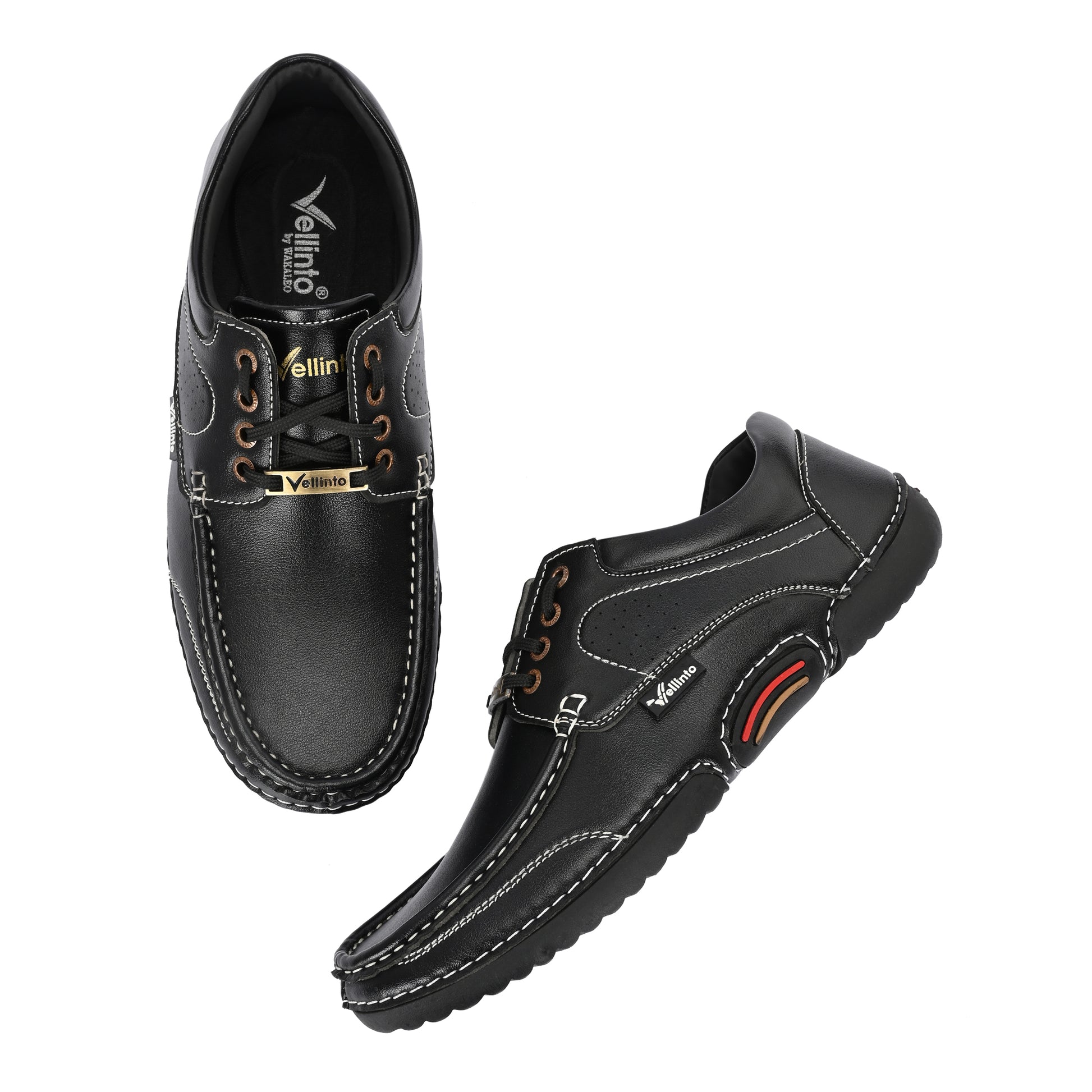 Crafted with precision and built to last, these stylish Vellinto Men's STITCHFIT shoes offer a perfect blend of durability, comfort, and fashionable design. The double durability construction, where the upper is first glued and then stitched to the sole, ensures these shoes stand the test of time. Featuring antirust brass eyelets, they combine both longevity and sleek aesthetics, making them a reliable choice for any wardrobe. The memory foam padding delivers unmatched comfort, providing cushioning that molds to your feet for a personalized fit. With their latest trendy style, these shoes are ideal for casual wear, offering the perfect balance of comfort and modern design. Whether you're dressing up or going for a laid-back look, these shoes ensure you stay comfortable and stylish all day long. Perfect for men who value both style and functionality, they’re the ultimate addition to any fashion-forward wardrobe.