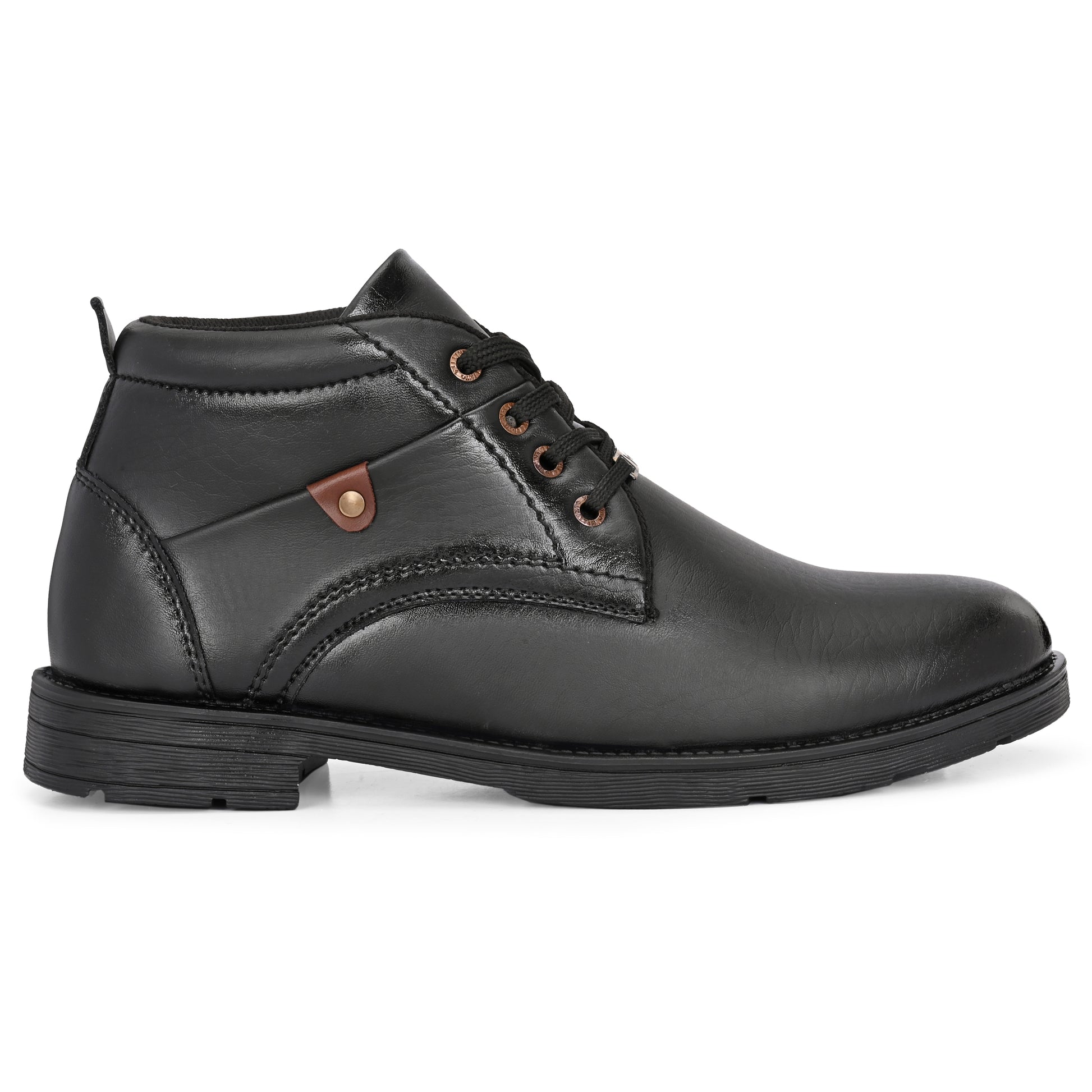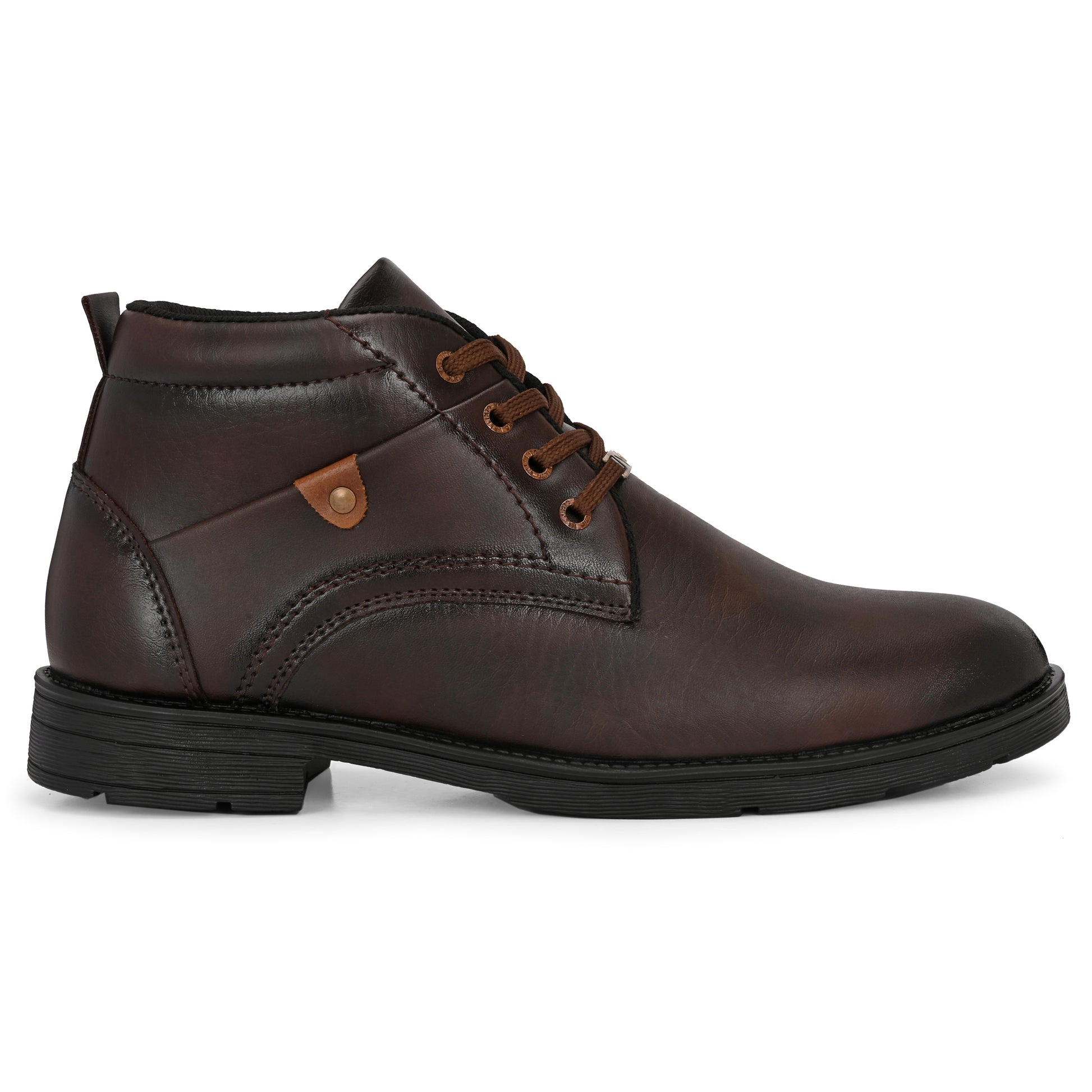 Step out in style with these men's ankle length synthetic leather boots, perfect for both formal and casual wear. Crafted with premium PU leather, these stylish lace-up shoes offer a sleek finish in classic colors like brown, dark brown, and black. Designed for office, college, party, or daily use, they feature an anti-slip sole, cushioned insole, and a lightweight build for all-day comfort. These versatile boots for men and boys combine durability, elegance, and affordability, making them the ideal fashion footwear under budget. Upgrade your look with these trendy, comfortable, and long-lasting shoes.