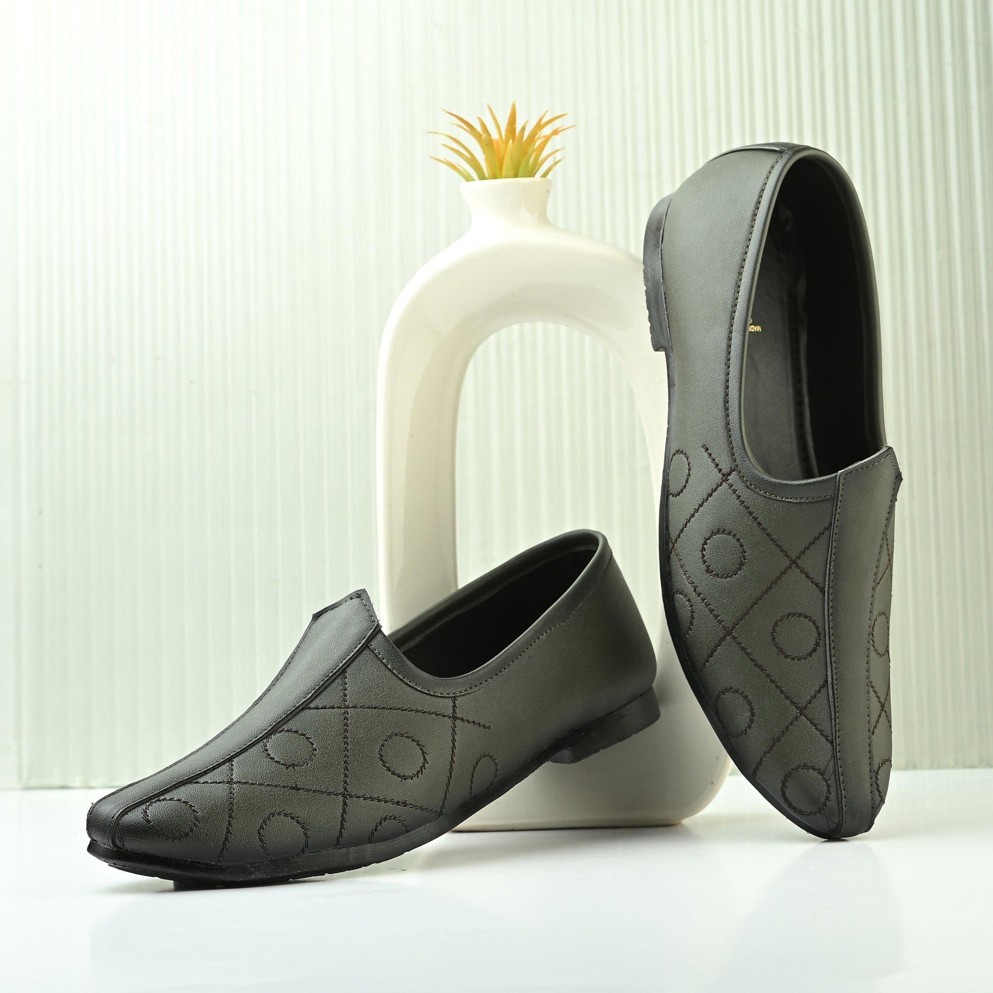 Step into tradition with these stylish men’s ethnic slip-on shoes, designed for perfect pairing with kurta pajama, sherwani, or Indo-western attire. Crafted from high-quality PU synthetic leather, these mojari-style shoes for men feature elegant stitching, soft inner lining, and a durable sole for all-day comfort. Ideal for weddings, parties, cultural events, and festive occasions, they offer a blend of comfort, tradition, and modern style. The easy slip-on design ensures hassle-free wear, making them a smart choice for any celebration. A must-have ethnic footwear option for men who value both elegance and convenience.