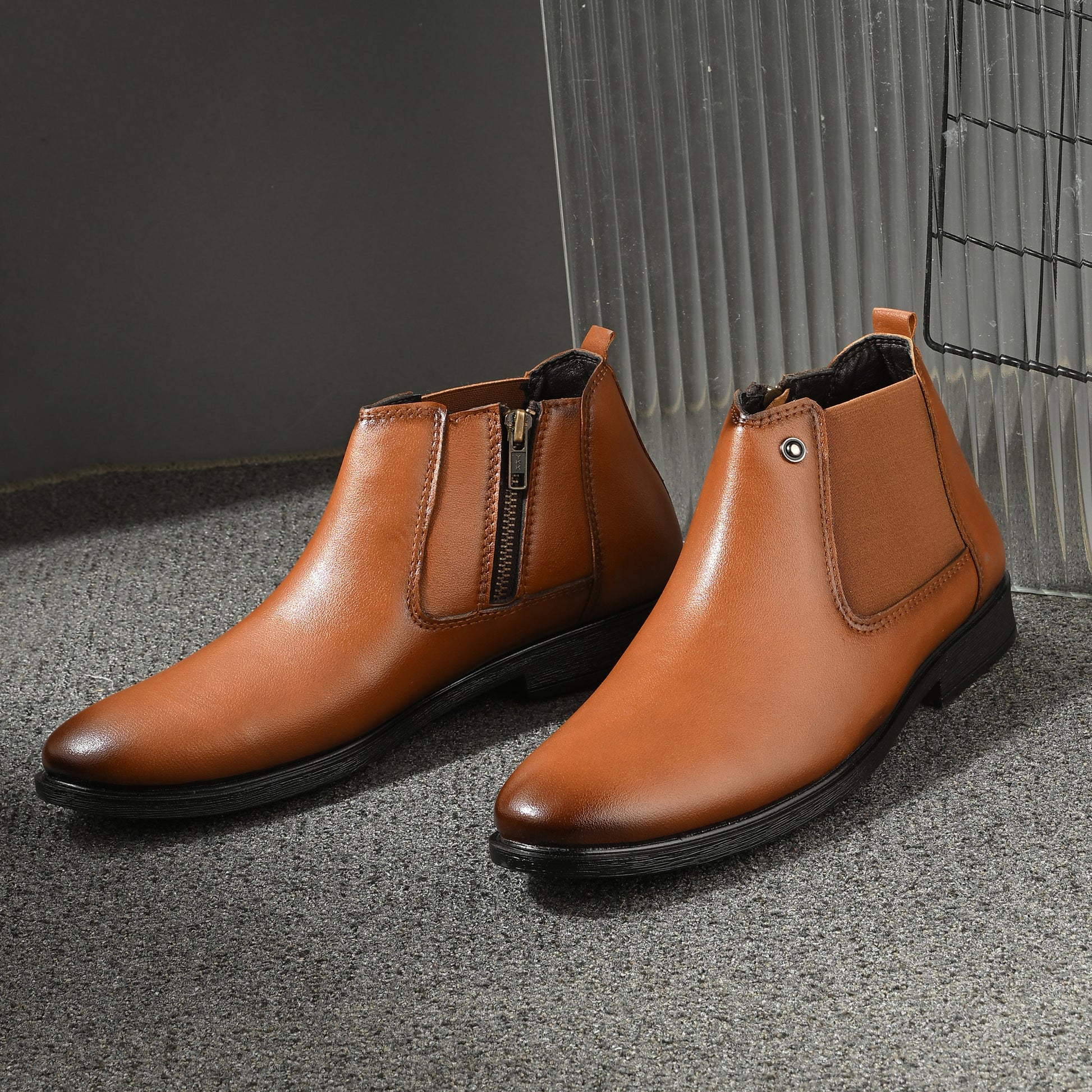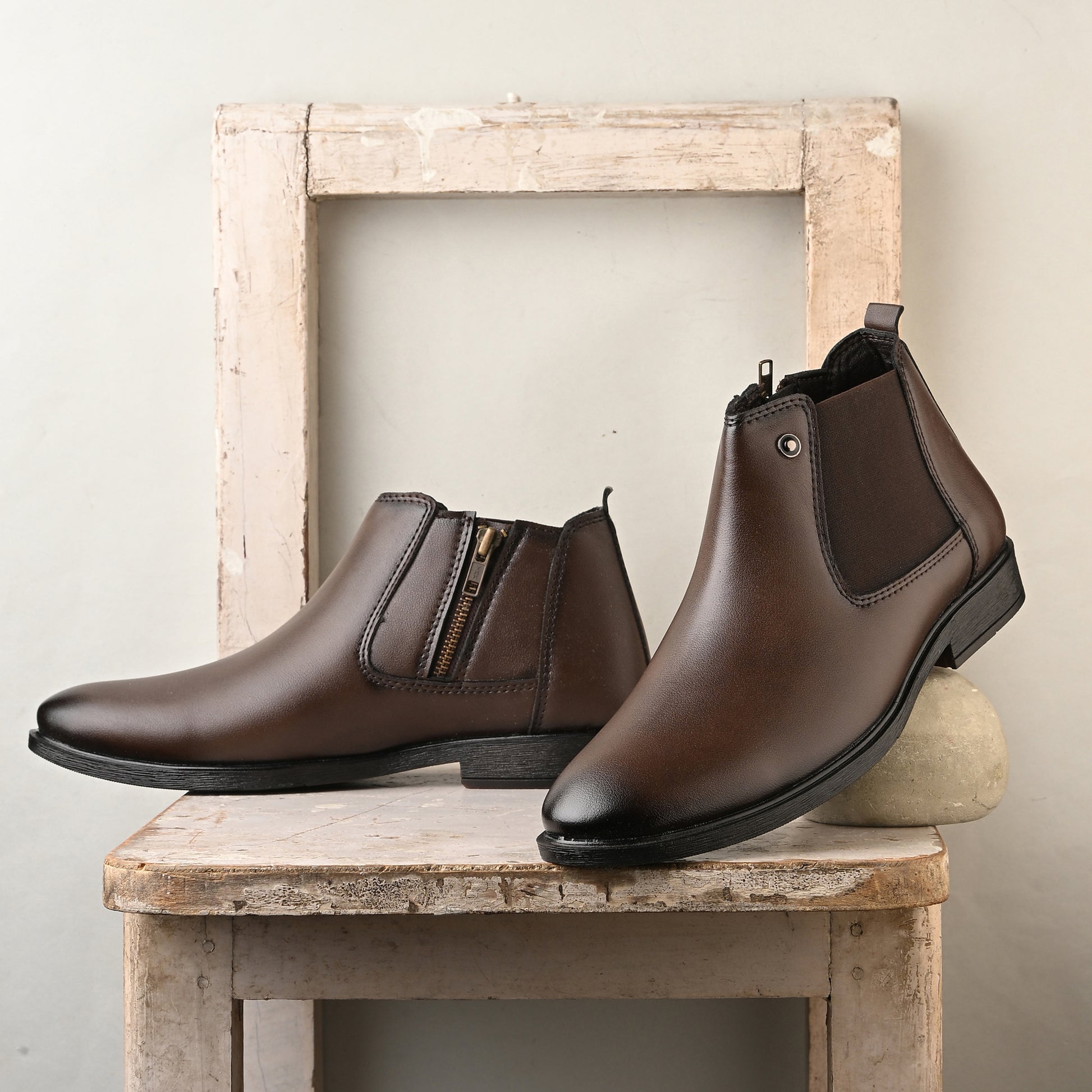 Versatile and effortlessly stylish, our casual Chelsea boots for men blend classic design with modern comfort. Crafted from premium leather, these boots feature a sleek silhouette with elastic side panels and Zip closure for easy wear. Perfect for any occasion, from casual outings to semi-formal gatherings, they exude timeless sophistication with every step.