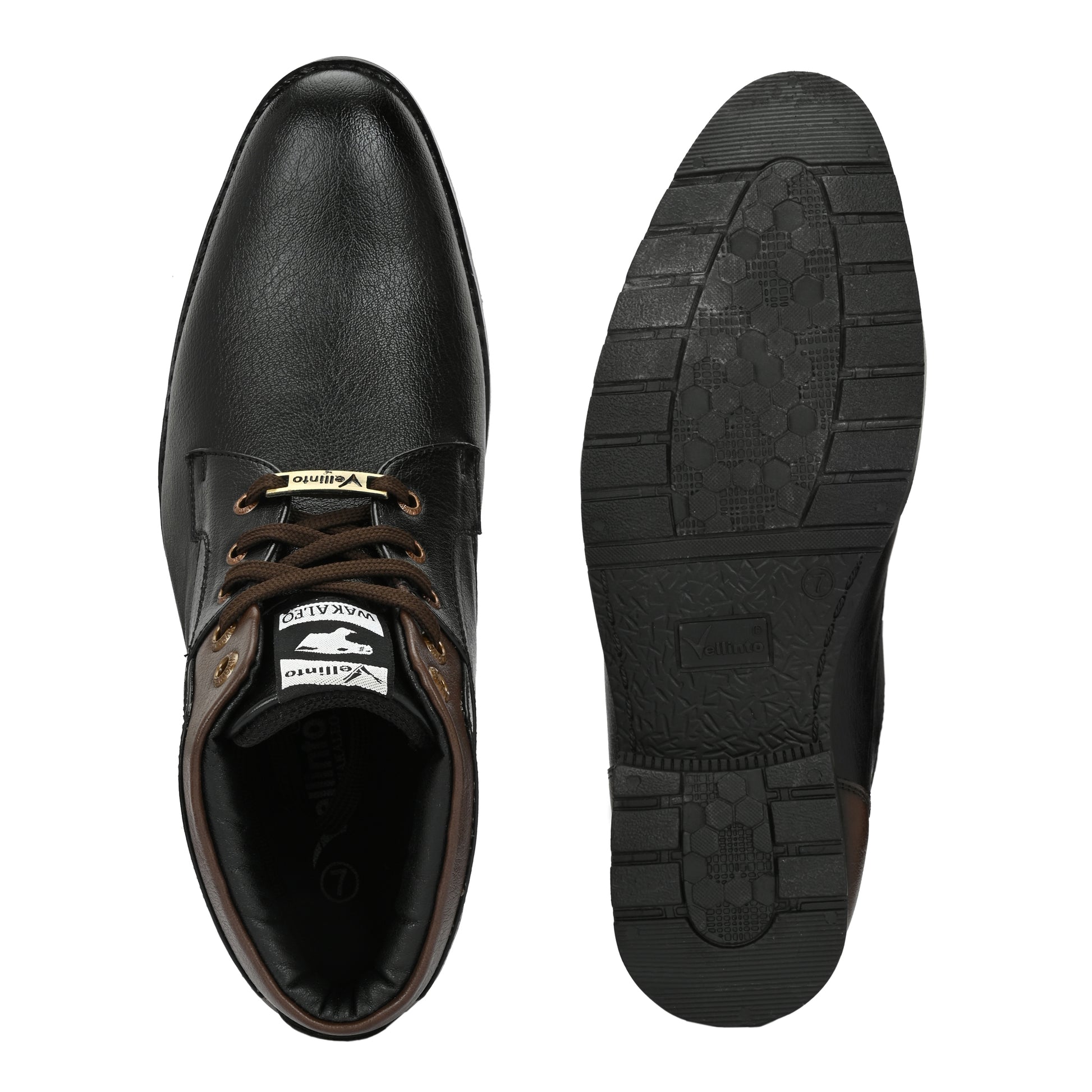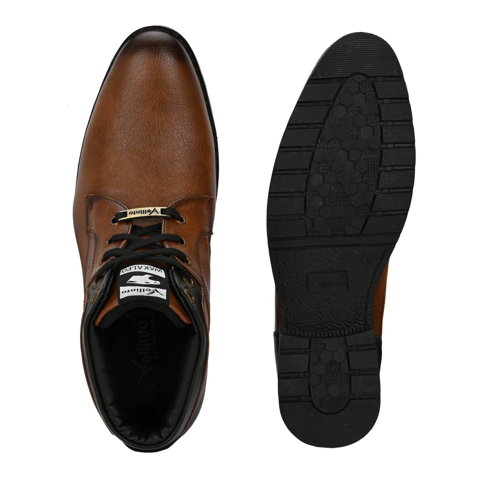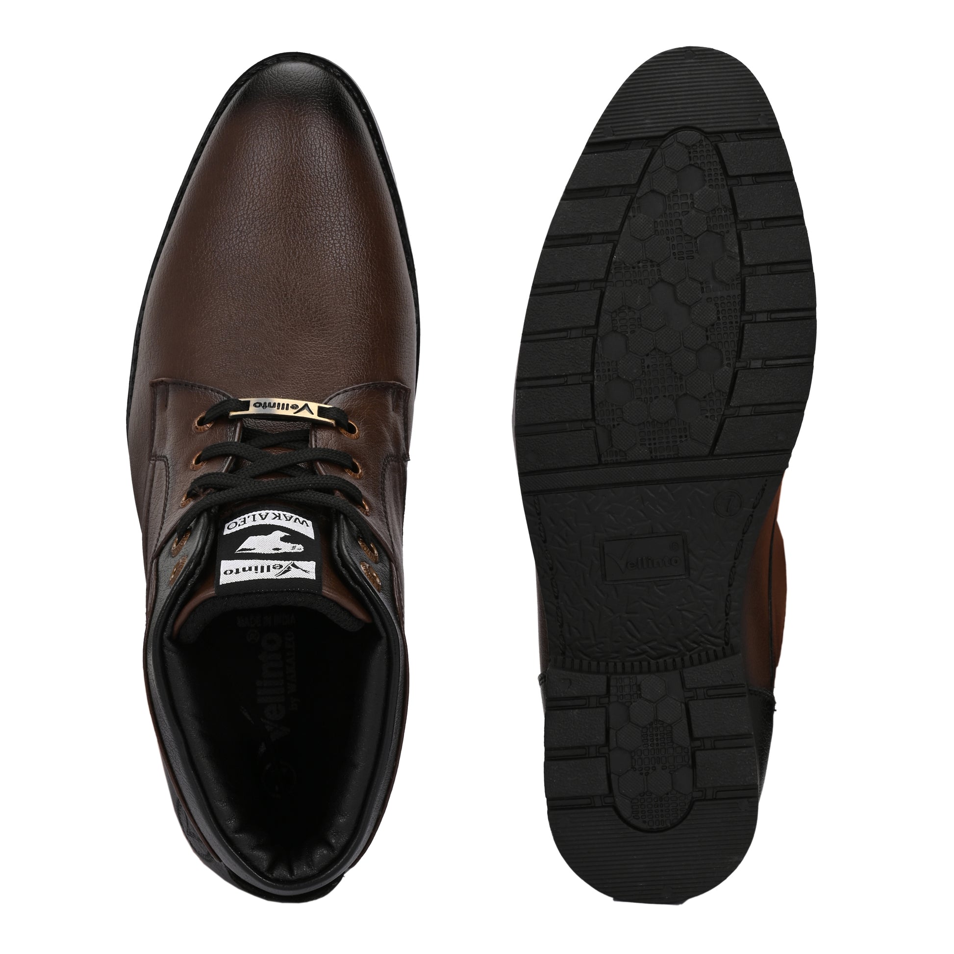 Step up your style game with Vellinto FRONTIER Men's latest trendy and stylish casual boots, designed for men who want both fashion and functionality. Made from premium synthetic leather, these lace-up ankle boots offer a comfortable fit with padded collars and breathable lining, perfect for daily wear, casual outings, or office use. The rugged rubber sole ensures excellent grip and durability, making them ideal for walking or semi-formal occasions. Available in versatile brown, dark brown, and black-brown shades, these boots combine modern trends with classic appeal, making them the perfect addition to any wardrobe looking for comfortable, stylish, and durable men's boots.
