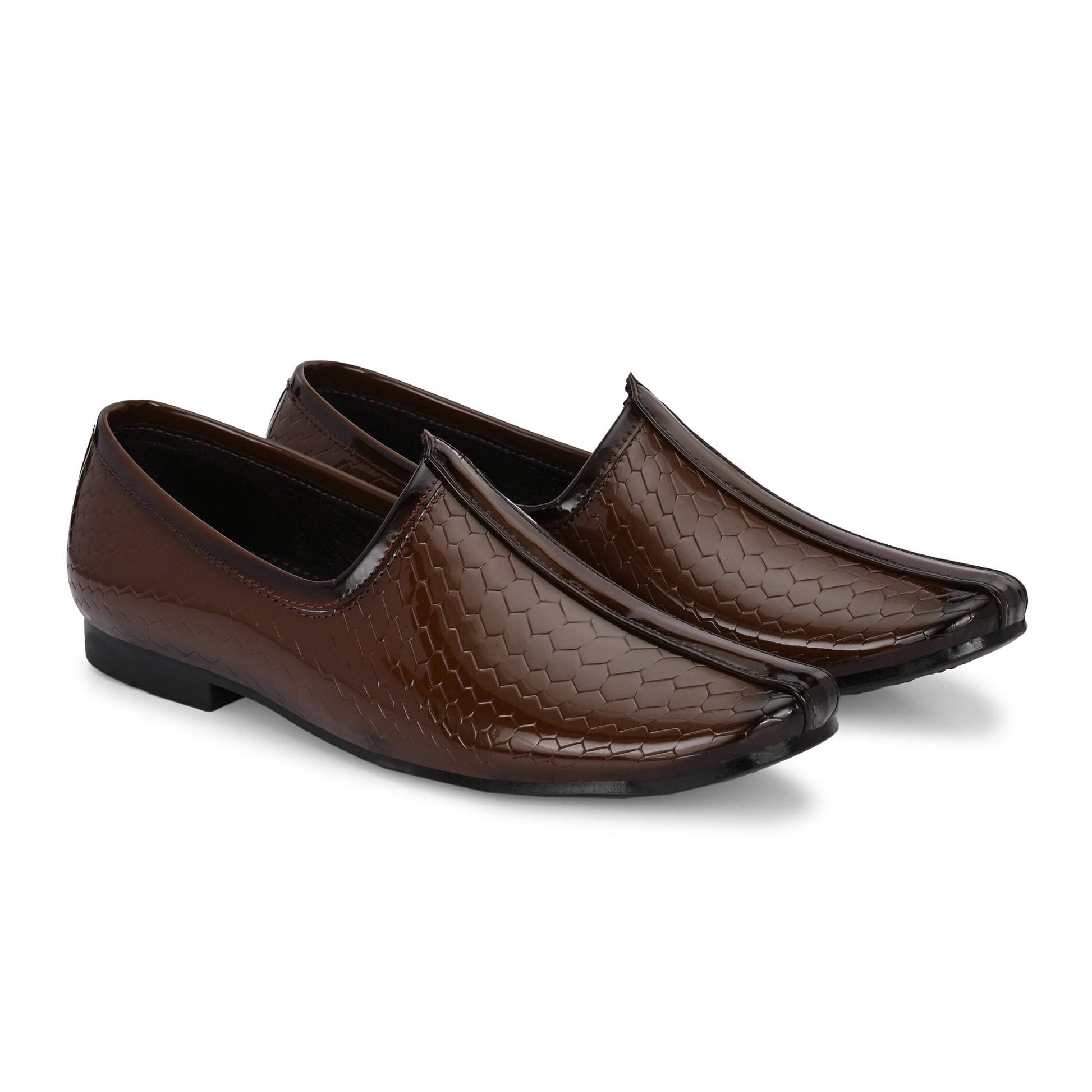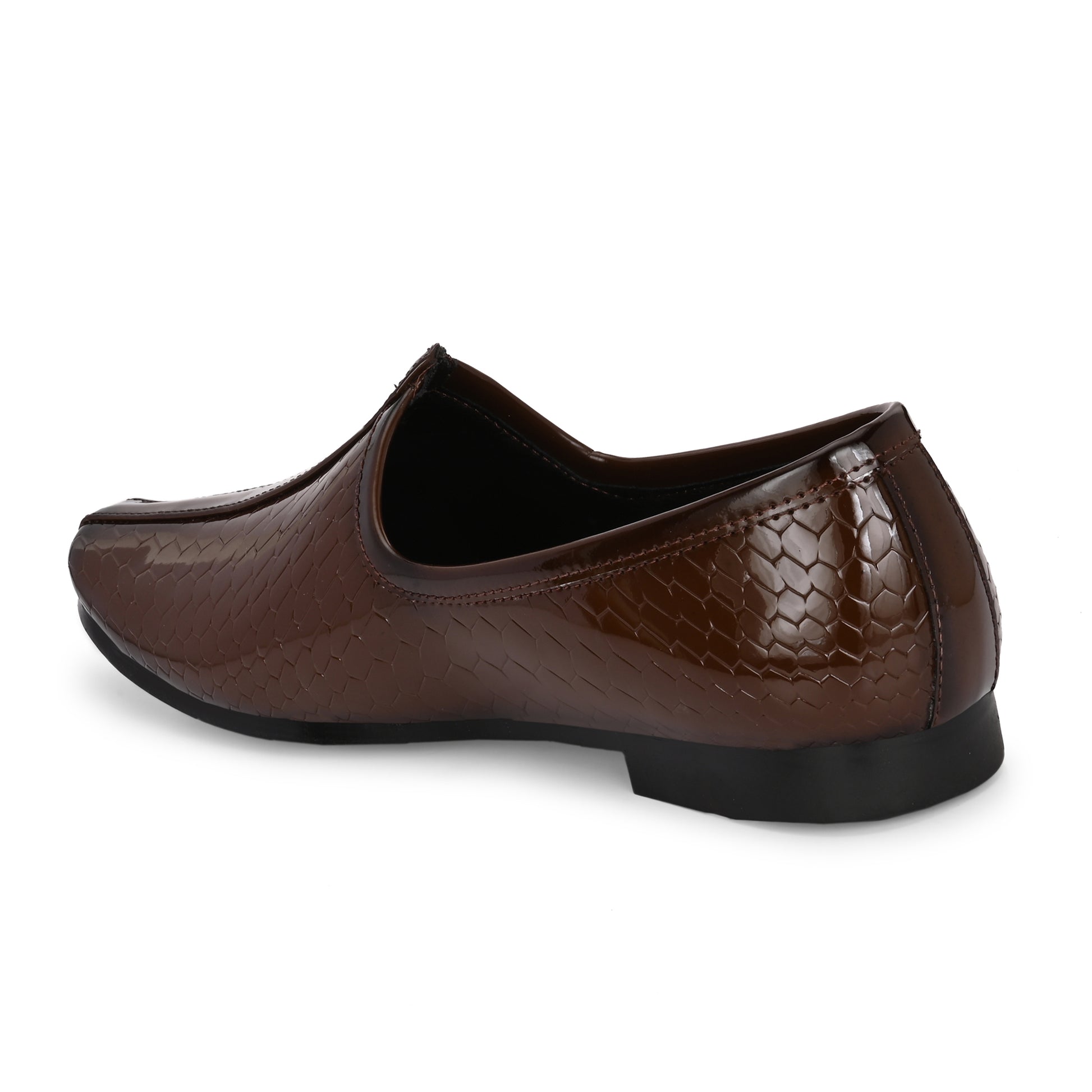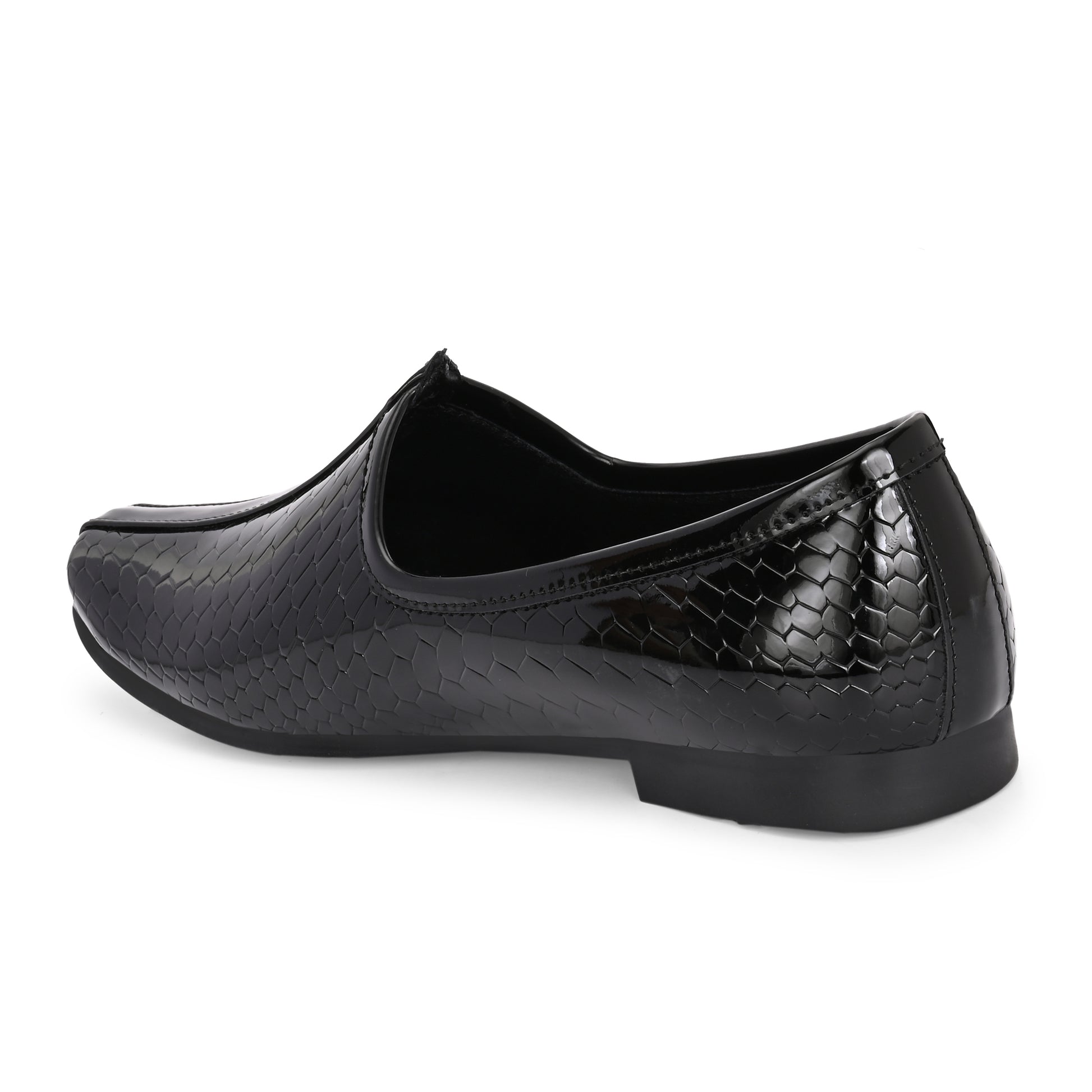 Introducing our Patent Ethnic Nagra Shoes for men – a fusion of timeless charm and modern sophistication. Handcrafted by skilled artisans, these shoes boast intricate detailing and a sleek patent finish, perfectly bridging tradition and contemporary style. With comfortable insoles and arch support, they're ideal for any occasion. Elevate your look and embrace cultural elegance with these exquisite shoes, a tribute to India's rich heritage and craftsmanship.