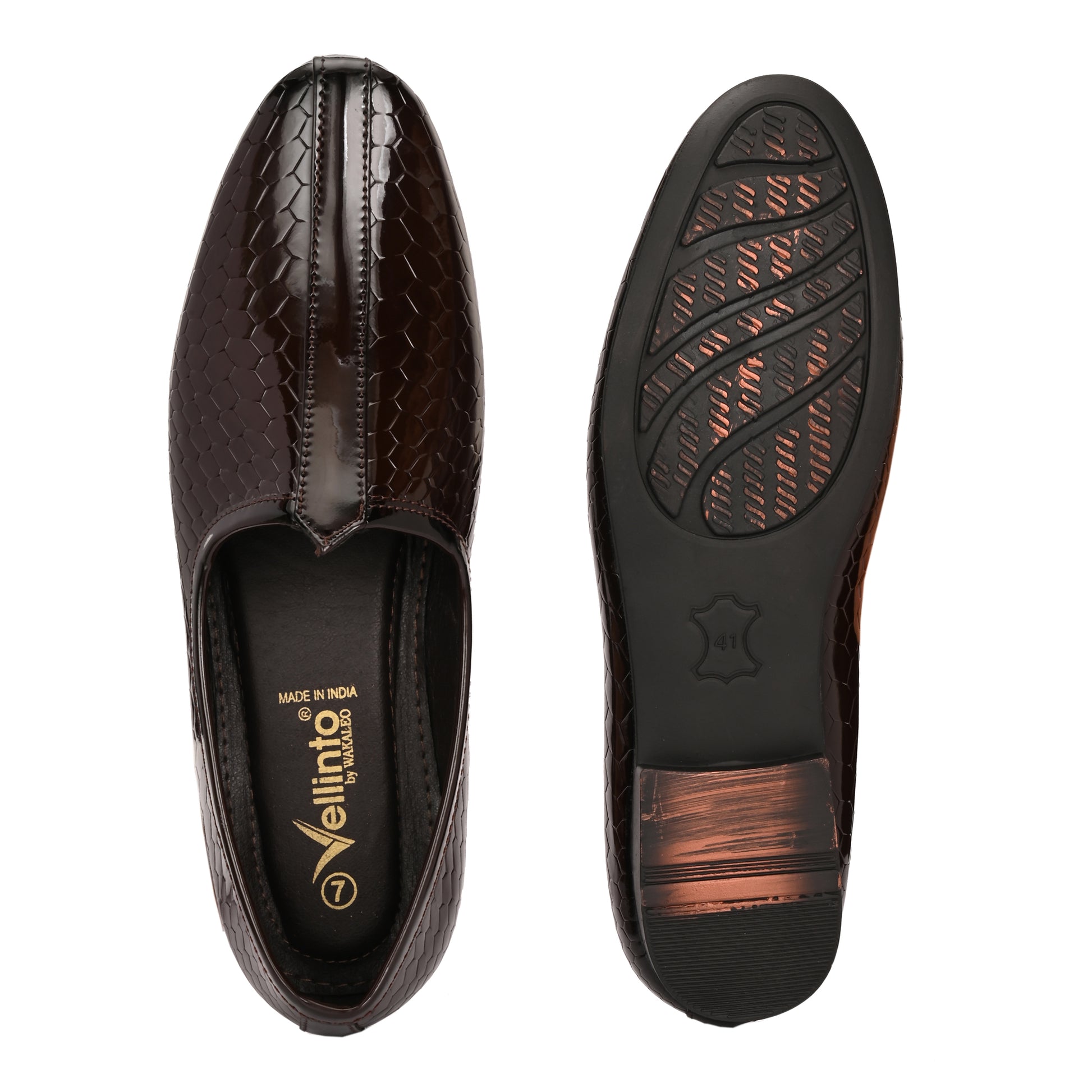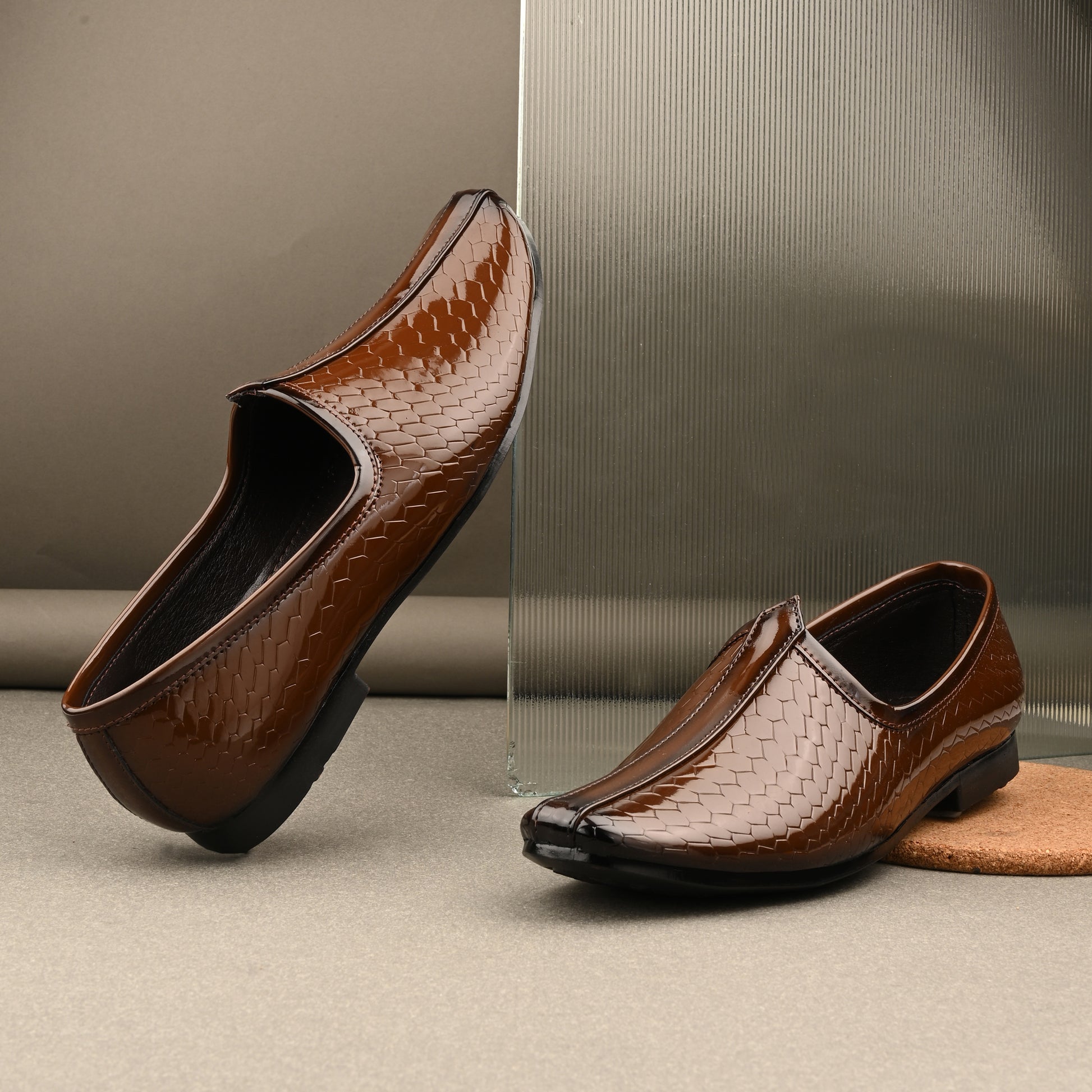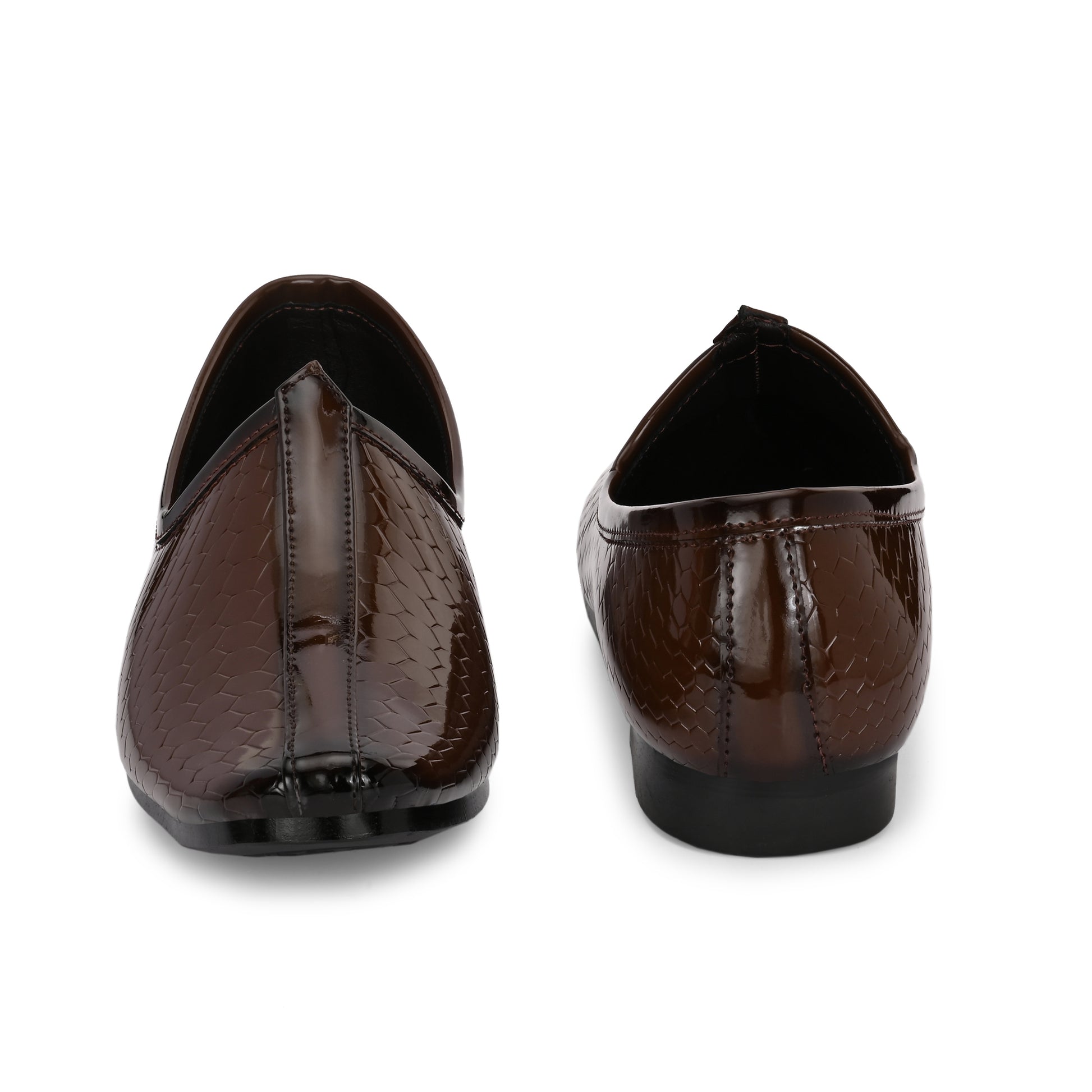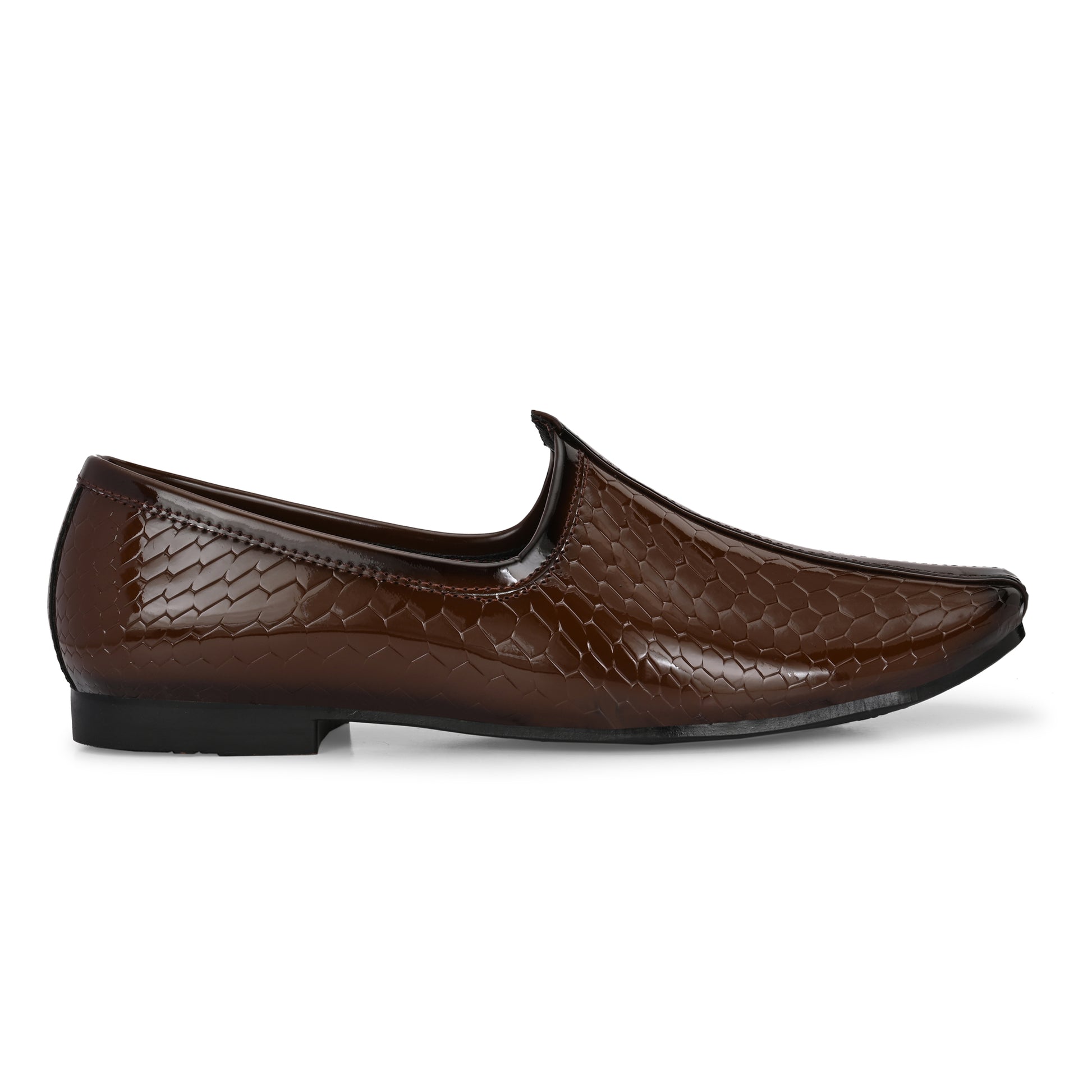 Introducing our Patent Ethnic Nagra Shoes for men – a fusion of timeless charm and modern sophistication. Handcrafted by skilled artisans, these shoes boast intricate detailing and a sleek patent finish, perfectly bridging tradition and contemporary style. With comfortable insoles and arch support, they're ideal for any occasion. Elevate your look and embrace cultural elegance with these exquisite shoes, a tribute to India's rich heritage and craftsmanship.