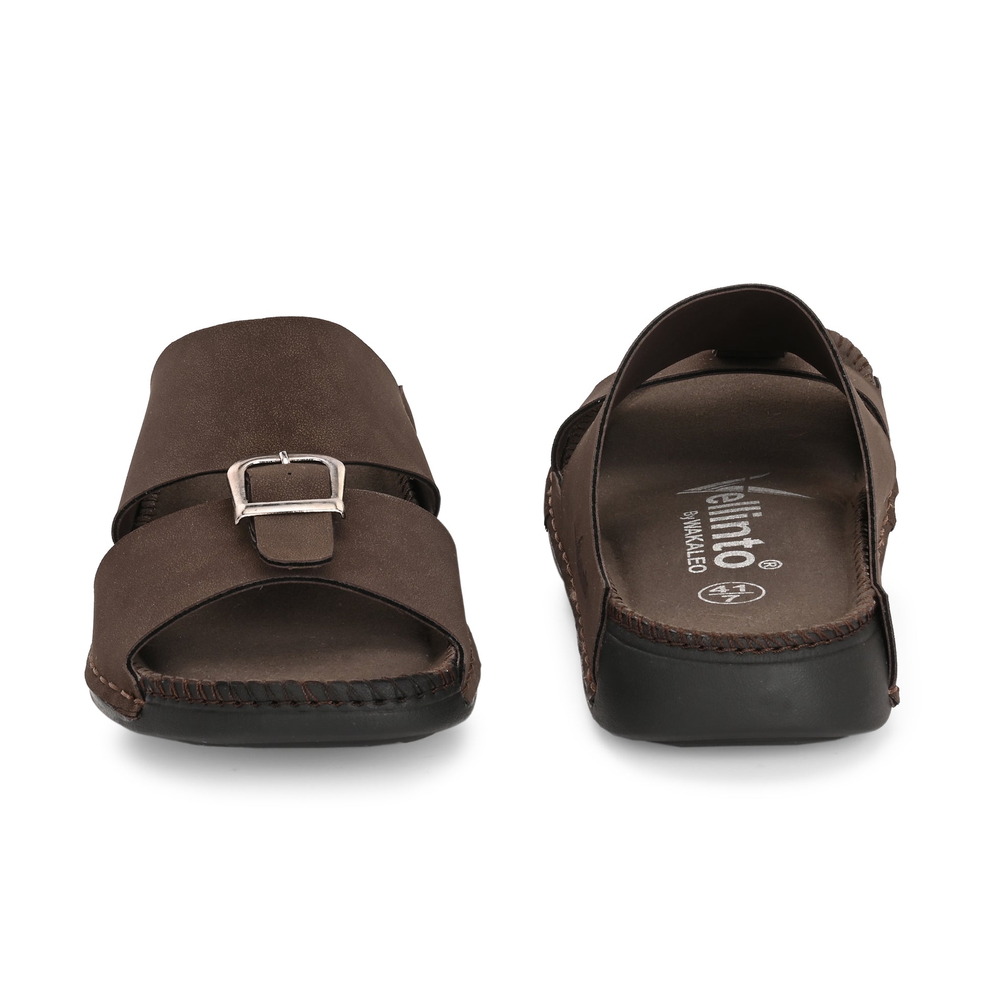 Step into everyday comfort and confidence with the Vellinto LUME Sandal. Designed with a sleek finish and dual buckle straps, it offers a secure, adjustable fit with a touch of modern sophistication. The contoured cushioned footbed supports your feet throughout the day, while the anti-slip grooved sole ensures steady grip on any surface. Lightweight yet durable, the LUME is perfect for daily wear, whether you're indoors or on the move. Subtle branding completes the look, making it a versatile must-have for any wardrobe.