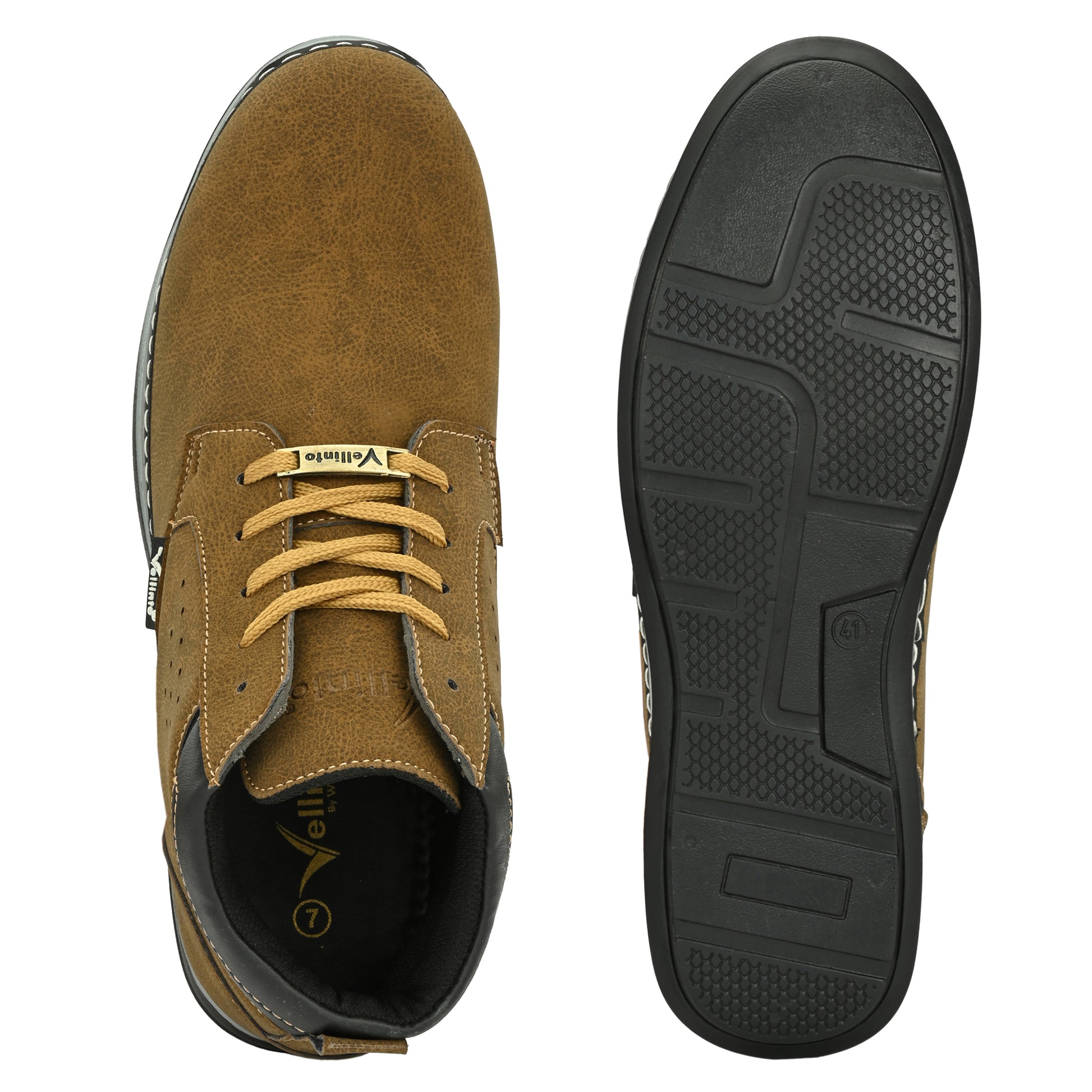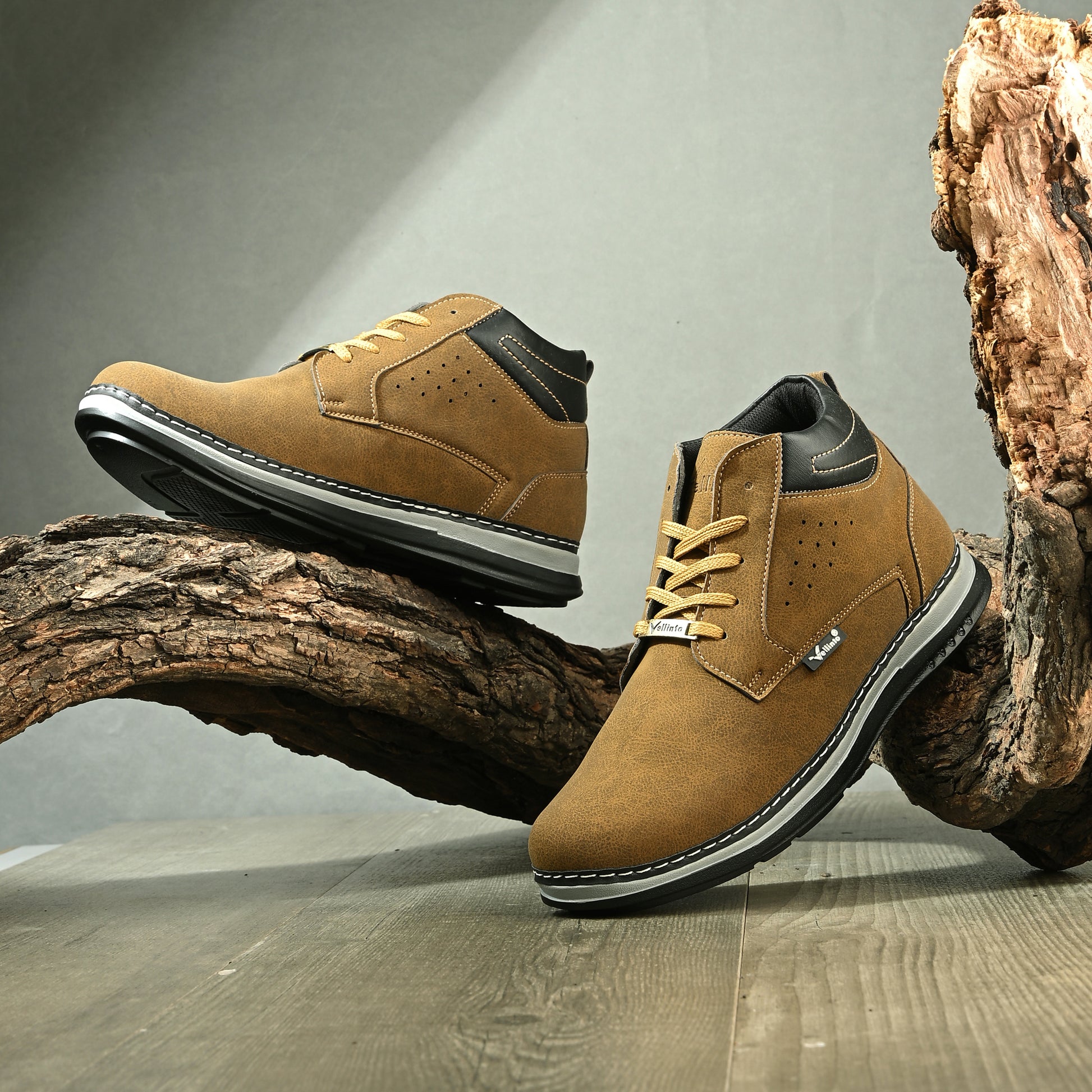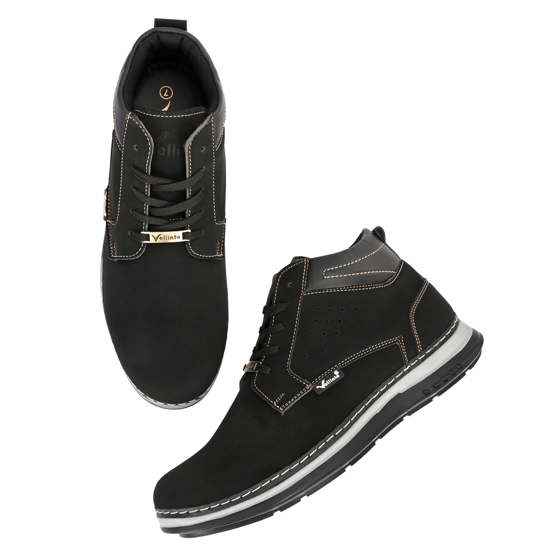 VELLINTO Casual synthetic boots for men offer versatile style and comfort. Crafted from durable synthetic materials, they provide a lightweight yet rugged option for everyday wear. These boots often feature trendy designs, cushioned insoles, and flexible outsoles, making them suitable for various casual occasions while maintaining a modern and urban aesthetic.