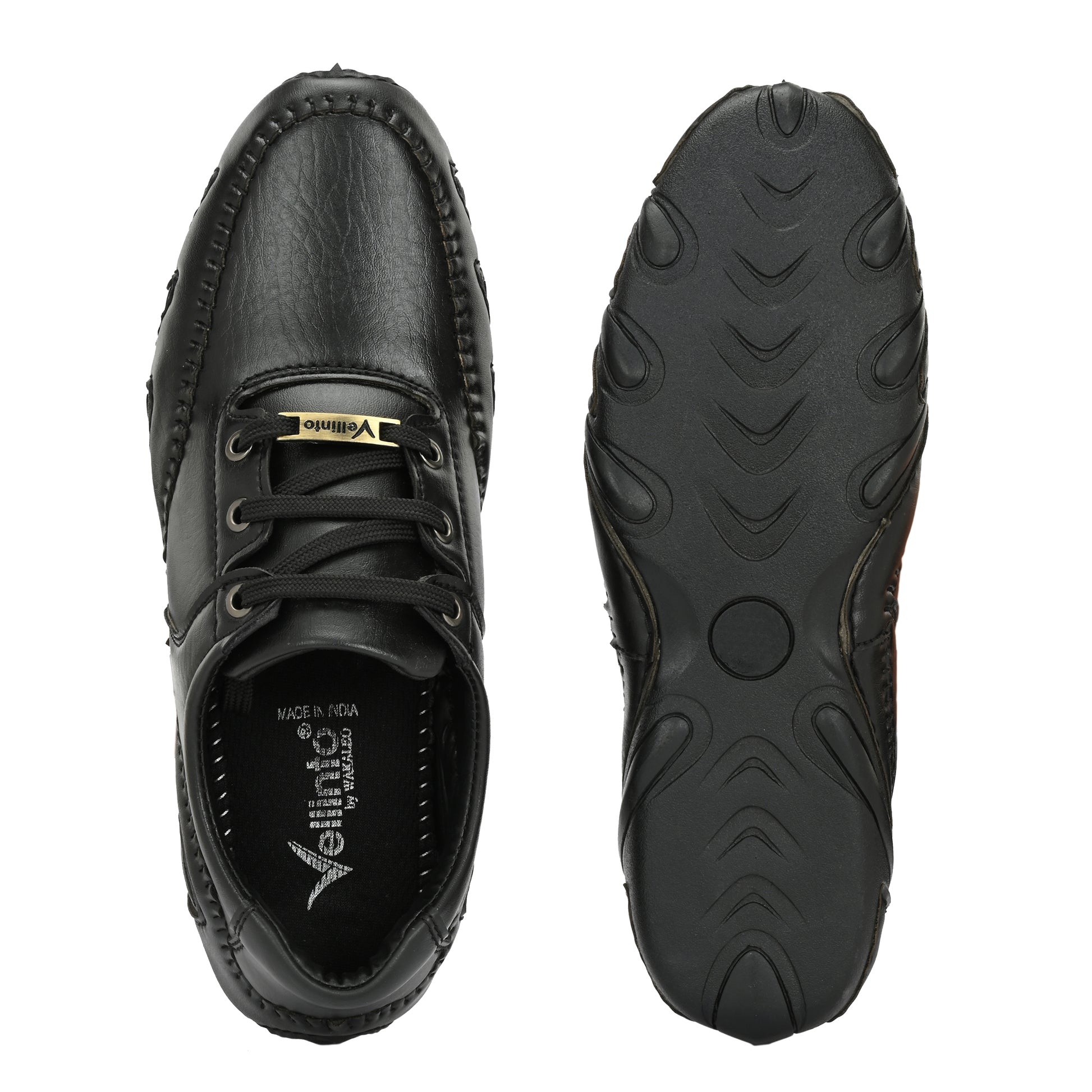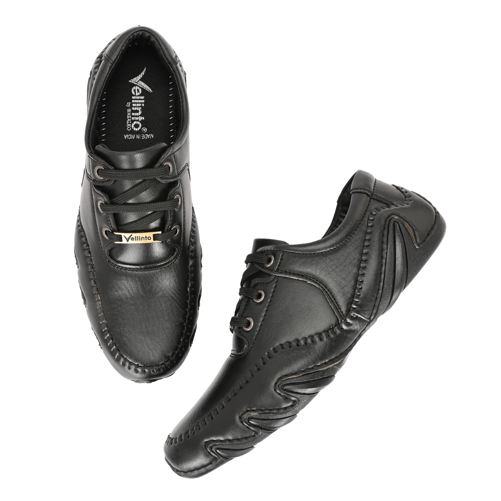 Step out in style with these Vellinto STITCHER trendy party wear shoes designed for the modern man. Crafted from premium synthetic leather with a smooth matte finish, these shoes are both stylish and durable. The memory foam insole ensures all-day comfort, while the stitched PVC sole offers excellent grip and long-lasting wear. Lightweight and flexible, they provide a perfect fit with an inner padded lining for maximum comfort. Ideal for party wear, office, or casual outings, these shoes combine fashion with function. Available in classic black and brown, they are a must-have for every man’s footwear collection. Made in India.