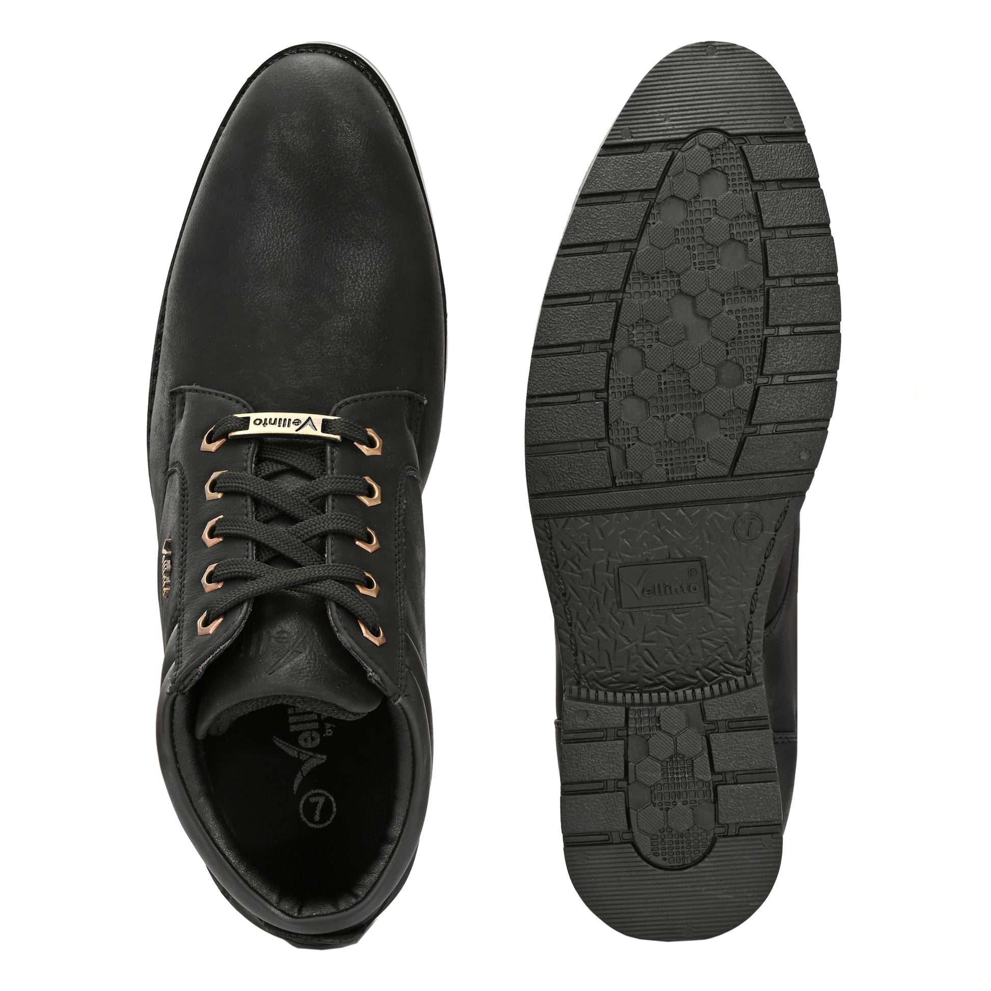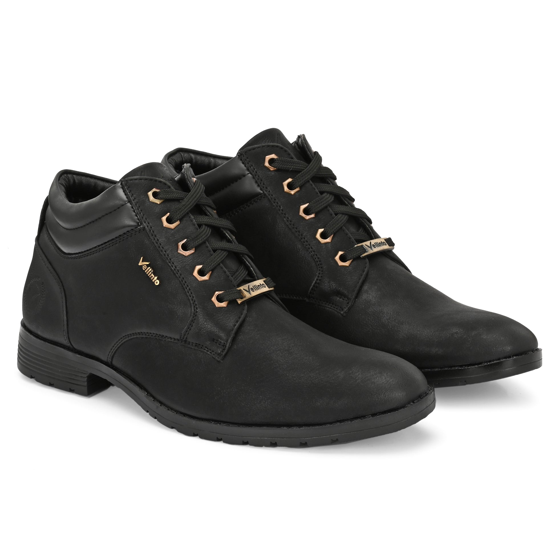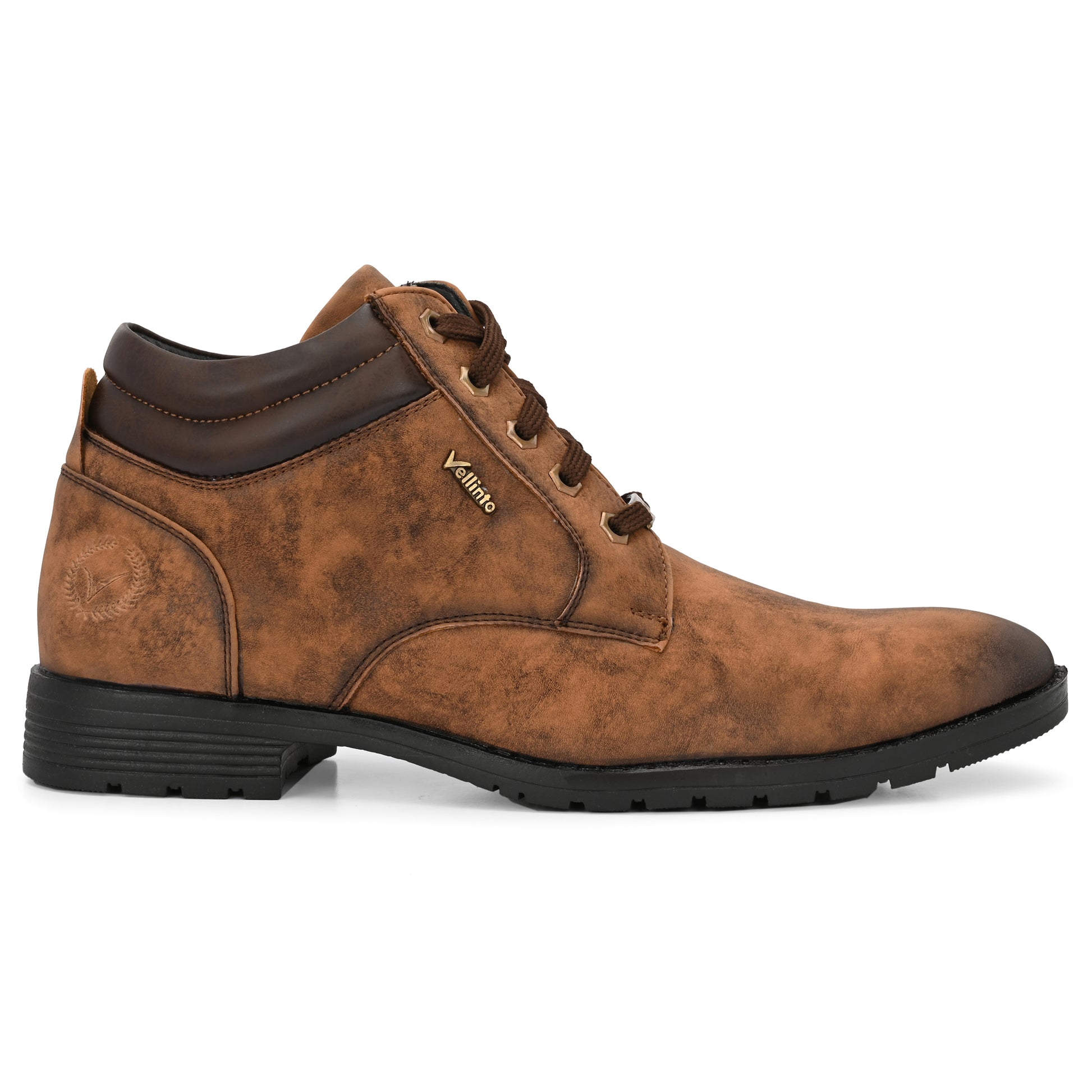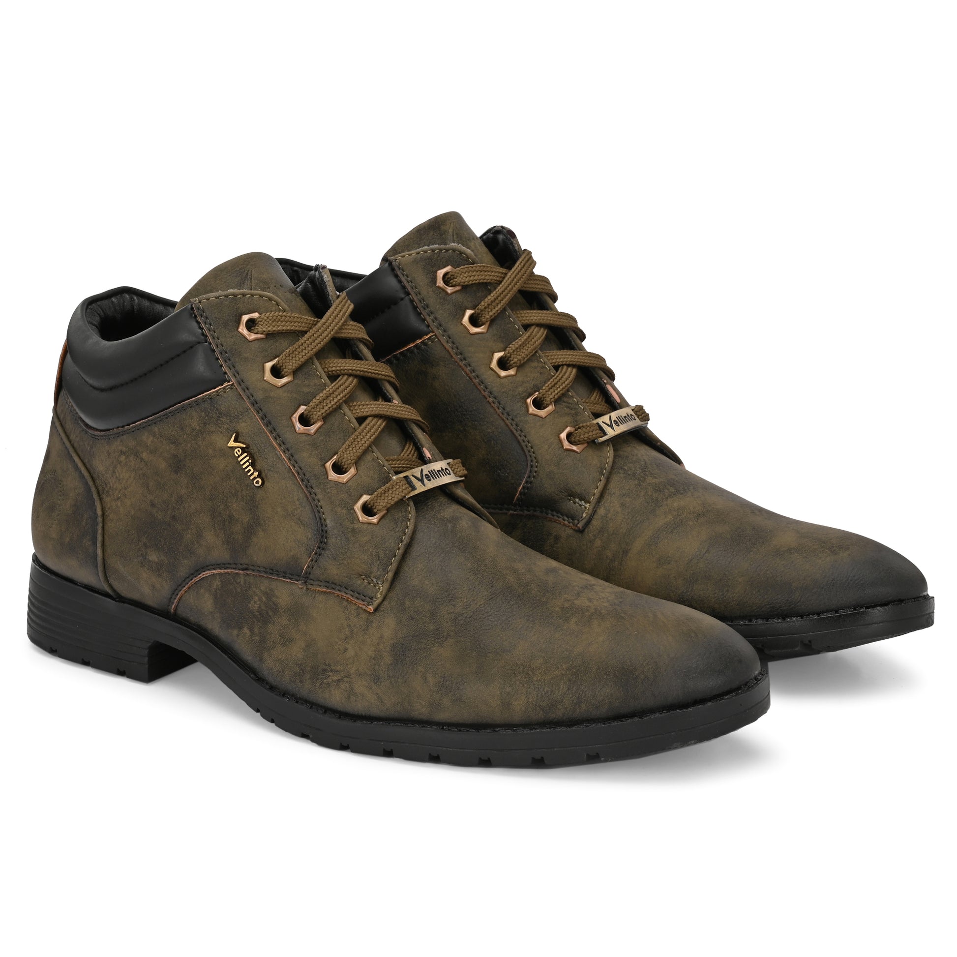 tep into style and comfort with the Vellinto STONY Series men's boots – perfect for casual, outdoor, party, and daily wear. Crafted with a rugged faux leather upper, cushioned insole, and anti-slip sole, these stylish high-ankle boots offer durability with a fashionable edge. Ideal for men's casual shoes, boots for men, and ankle length shoes, these are a must-have for any modern wardrobe. Available in Black, Brown, Grey, and Olive Green, these lace-up boots for men are designed to elevate your look. Wear them to work, outings, or travel – your feet deserve the best.