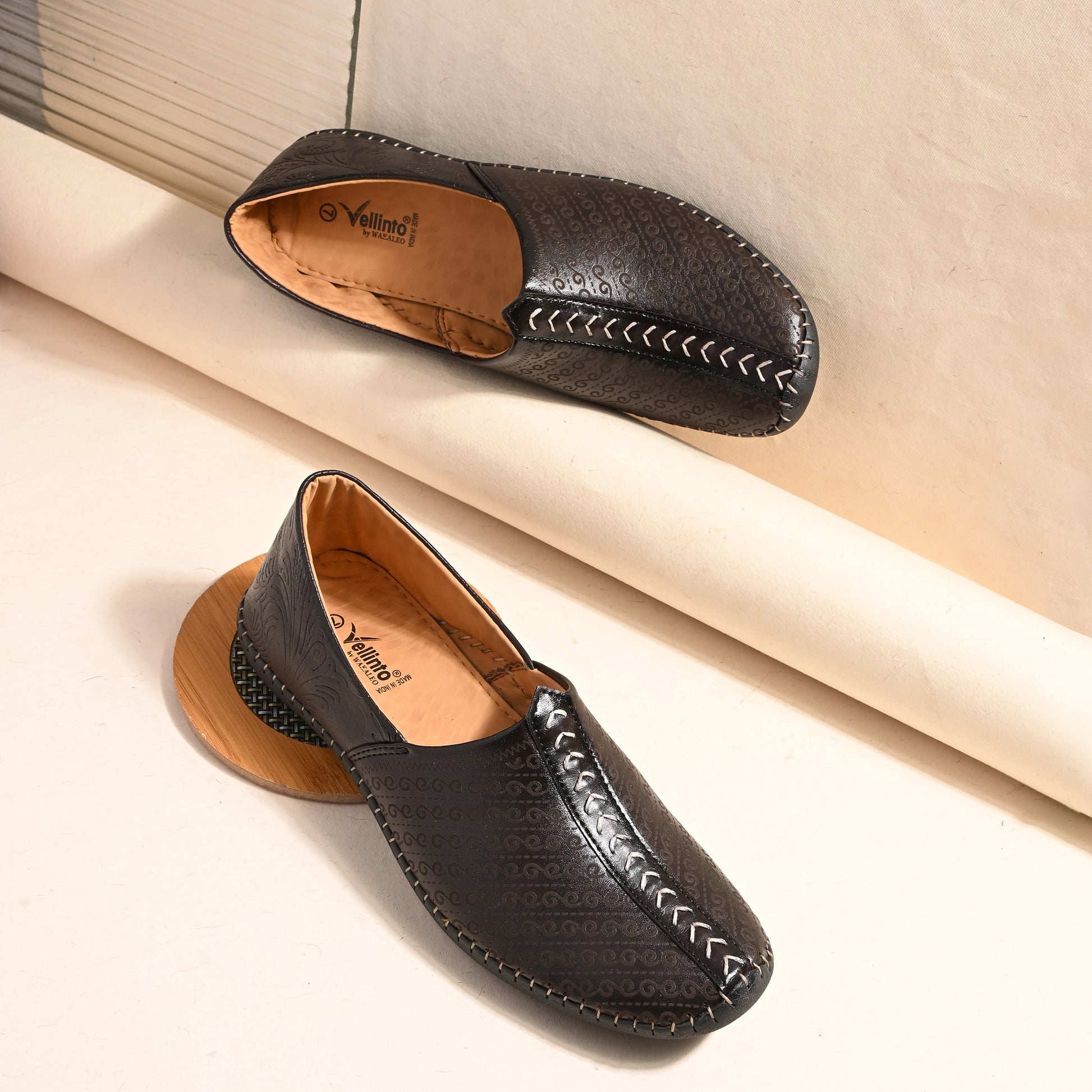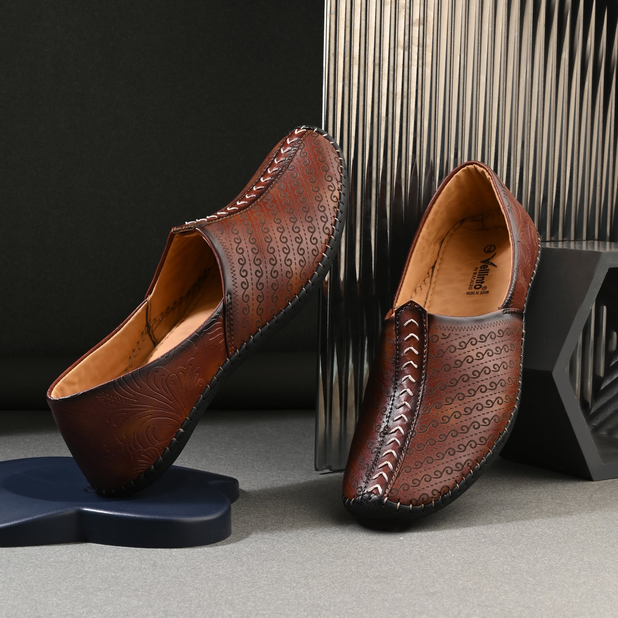 Introducing our synthetic leather ethnic shoes for men ? Vellinto SUTRA a harmonious blend of tradition and modernity. Crafted to perfection, these shoes exude the allure of genuine leather while remaining environmentally conscious. The intricate designs and patterns pay homage to cultural heritage, celebrating diversity. With a comfortable fit and durable construction, these shoes are ideal for a range of occasions, from festive gatherings to casual outings. Walk confidently, showcasing your unique style and commitment to sustainability. Elevate your footwear game with these exquisite synthetic leather ethnic shoes that capture the essence of timeless charm and contemporary sensibilities.