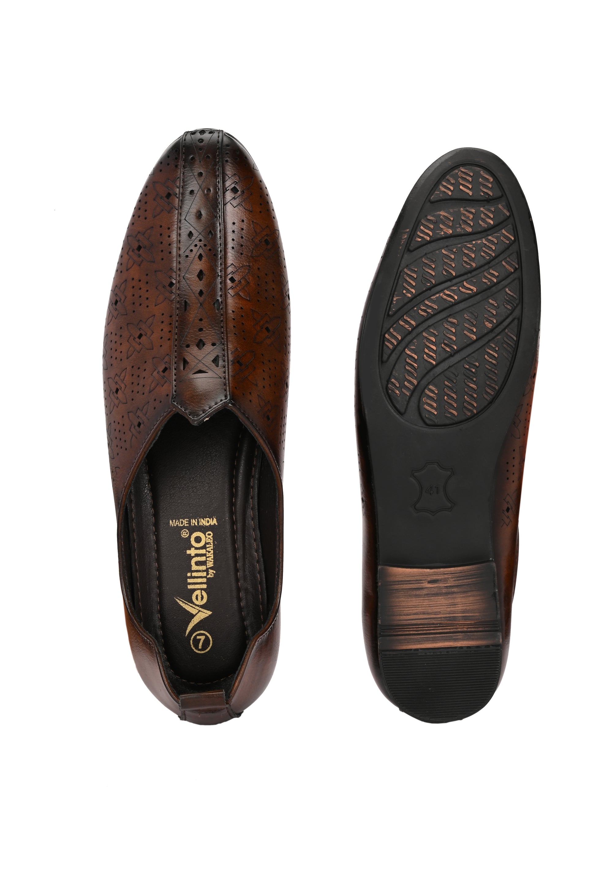 Elevate your style with this classy pair of Vellinto VOHRA Jutti from the house of Wakaleo. Featuring a contemporary refined design with exceptional comfort, this pair is perfect to give your quintessential dressing an upgrade.